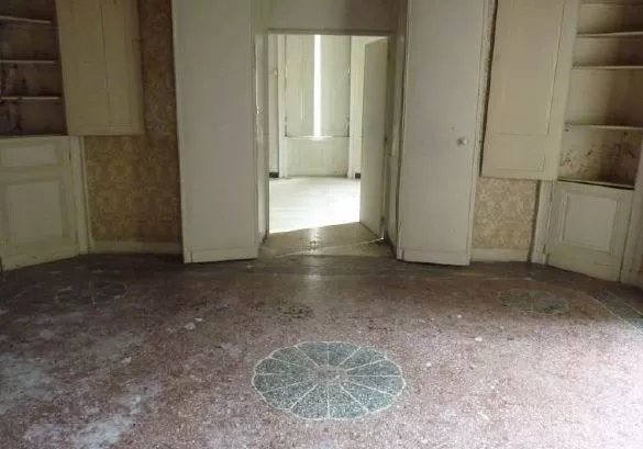 Un bâtiment de 3 niveaux, une facade alternant briques et pierre calcaire. 4 chambres à l'état actuel mais dans un état dégradé. Un garage de 50 m². Surface total bâtiment : 360,73 m²